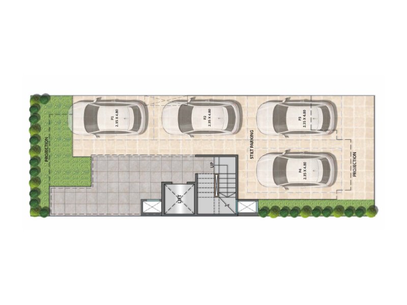 - Reserved Car Parking at Stilt Level + Waiting Lobby + Toilet